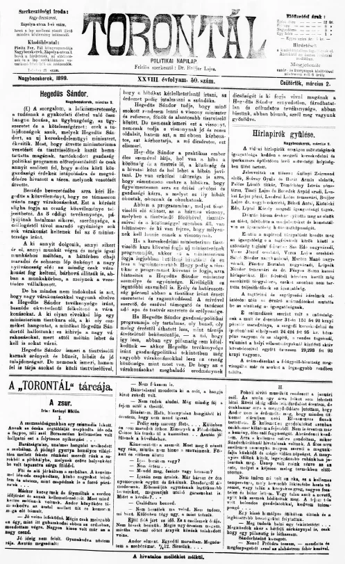Torontál, 28. évf. 1899. március 2. 50. sz.