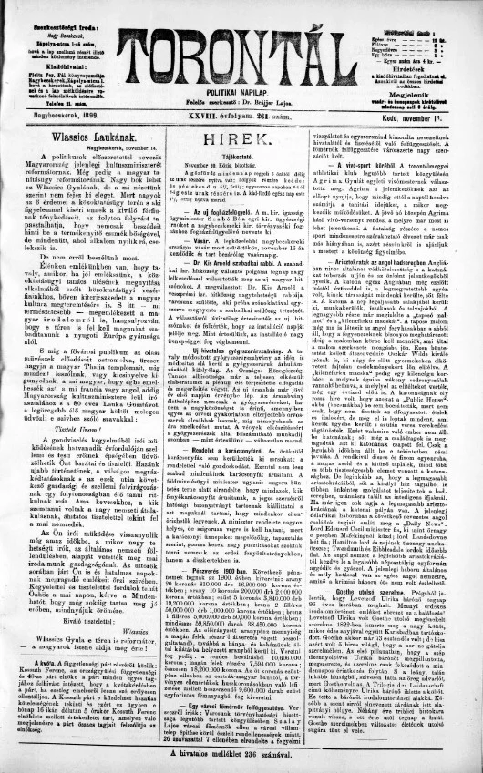 Torontál, 28. évf. 1899. november 14. 261. sz.