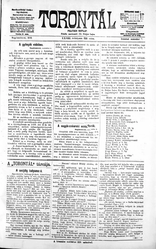Torontál, 28. évf. 1899. november 4. 253. sz.