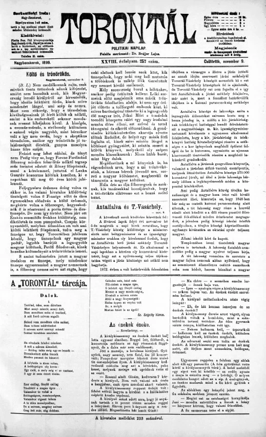 Torontál, 28. évf. 1899. november 9. 257. sz.