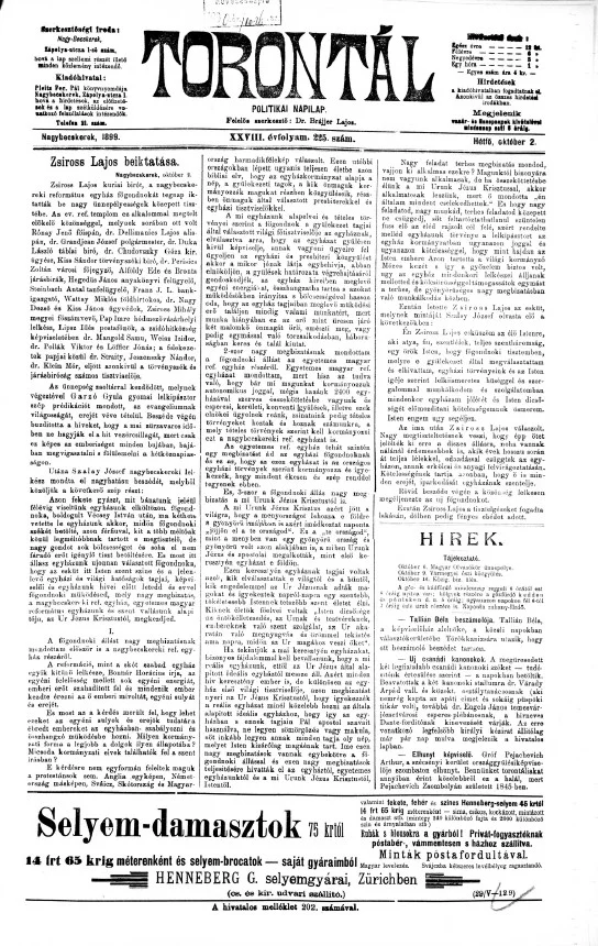 Torontál, 28. évf. 1899. október 2. 225. sz.