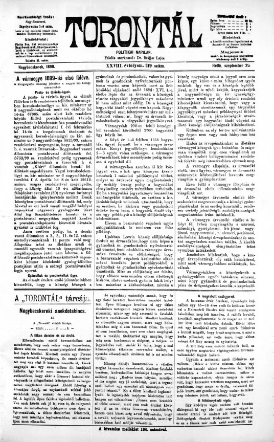 Torontál, 28. évf. 1899. szeptember 25. 219. sz.