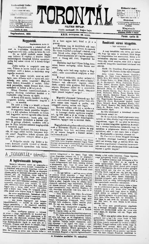 Torontál, 29. évf. 1900. április 13. 86. sz.