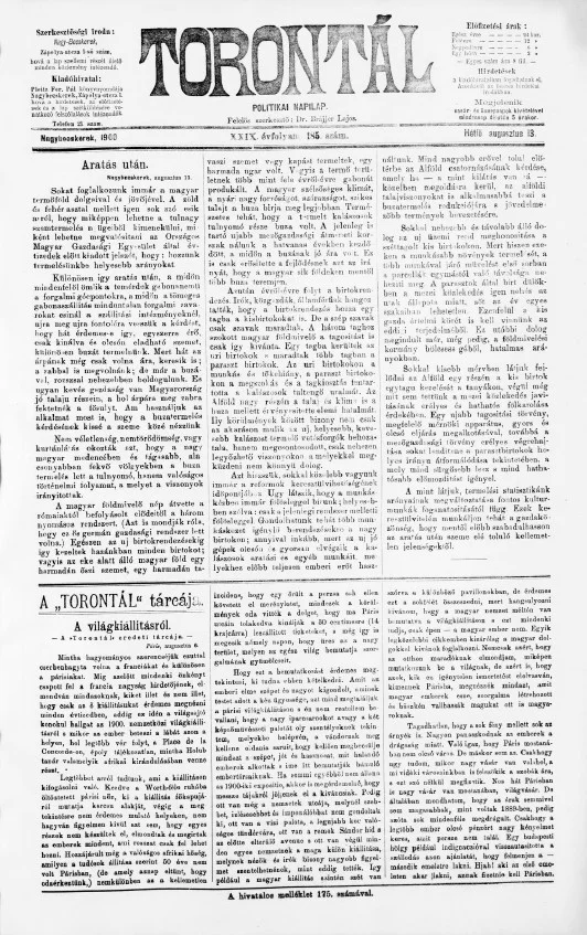 Torontál, 29. évf. 1900. augusztus 13. 185. sz.