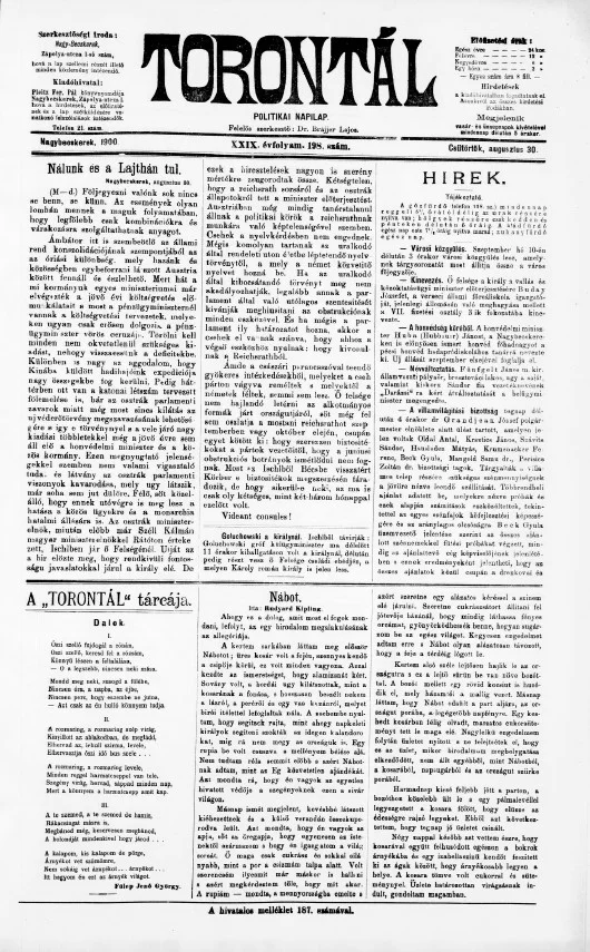 Torontál, 29. évf. 1900. augusztus 30. 198. sz.