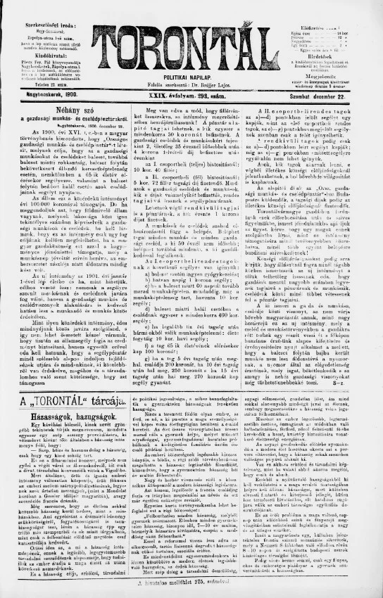 Torontál, 29. évf. 1900. december 22. 293. sz.