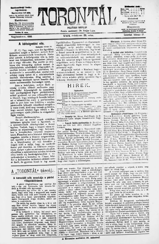 Torontál, 29. évf. 1900. február 17. 39. sz.