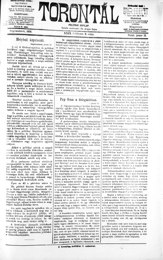 Torontál, 29. évf. 1900. január 12. 9. sz.
