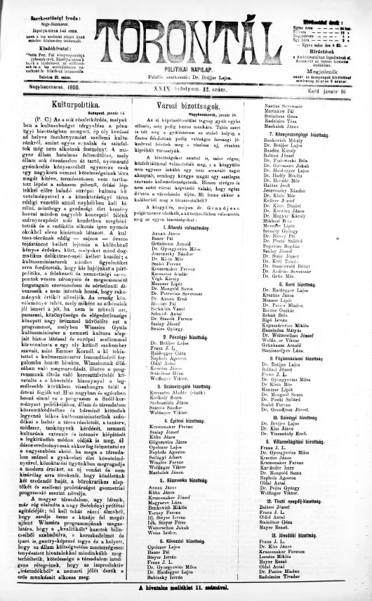 Torontál, 29. évf. 1900. január 16. 12. sz.