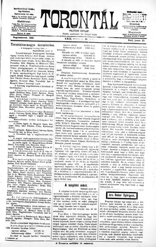 Torontál, 29. évf. 1900. január 23. 18. sz.