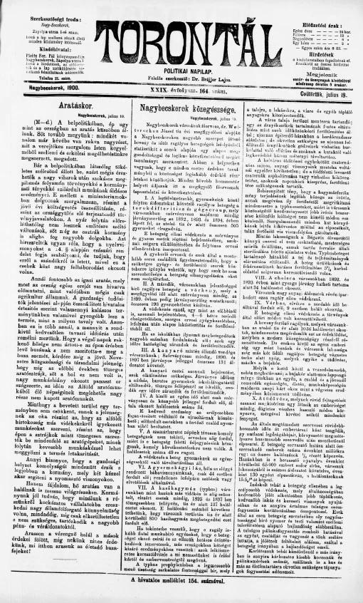 Torontál, 29. évf. 1900. július 19. 164. sz.