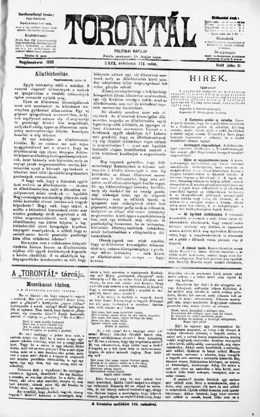 Torontál, 29. évf. 1900. július 31. 174. sz.