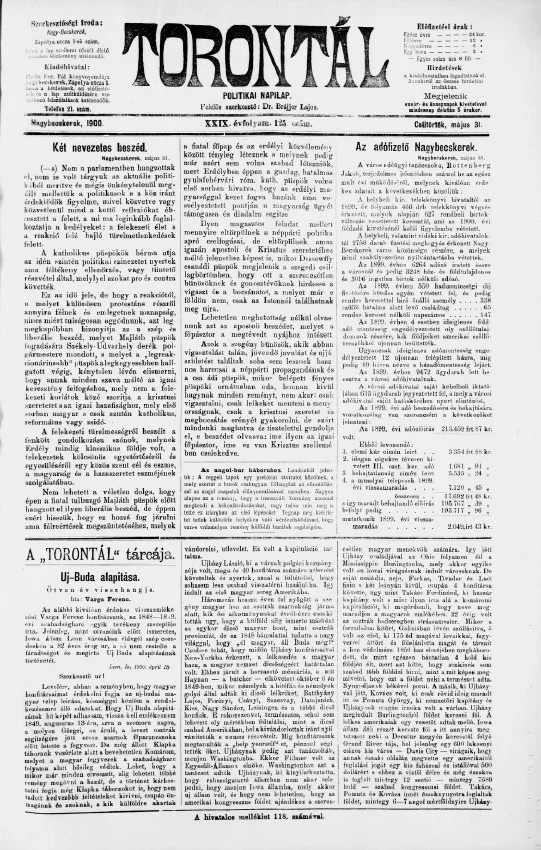 Torontál, 29. évf. 1900. május 31. 125. sz.