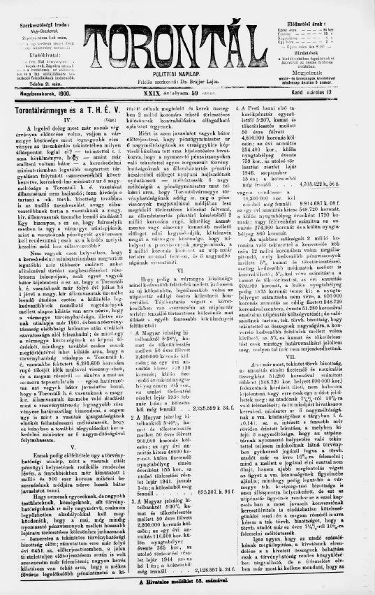 Torontál, 29. évf. 1900. március 13. 59. sz.