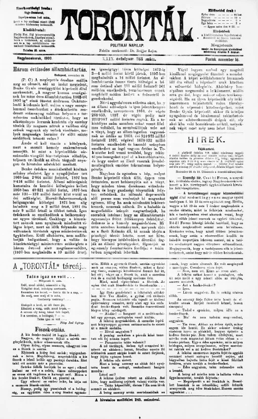 Torontál, 29. évf. 1900. november 16. 263. sz.