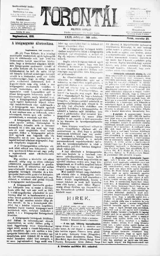 Torontál, 29. évf. 1900. november 23. 269. sz.