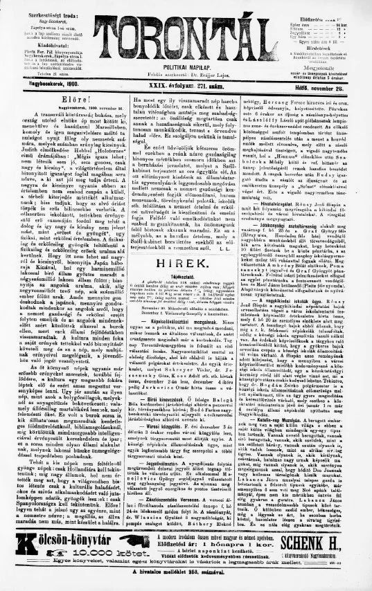 Torontál, 29. évf. 1900. november 26. 271. sz.