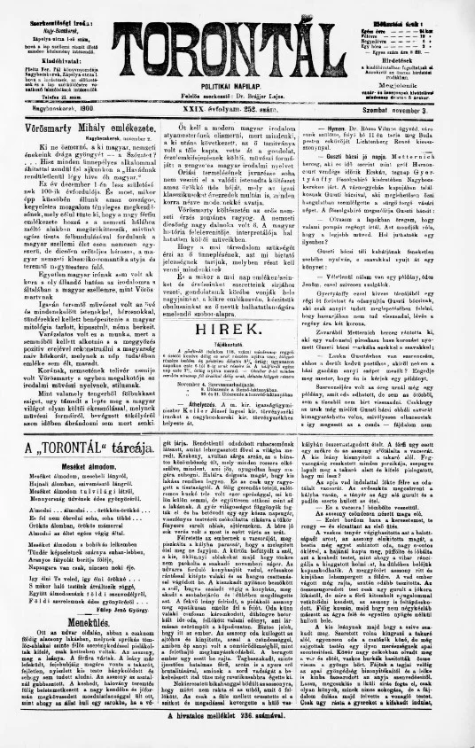 Torontál, 29. évf. 1900. november 3. 252. sz.