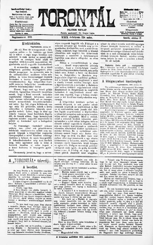 Torontál, 29. évf. 1900. október 17. 238. sz.