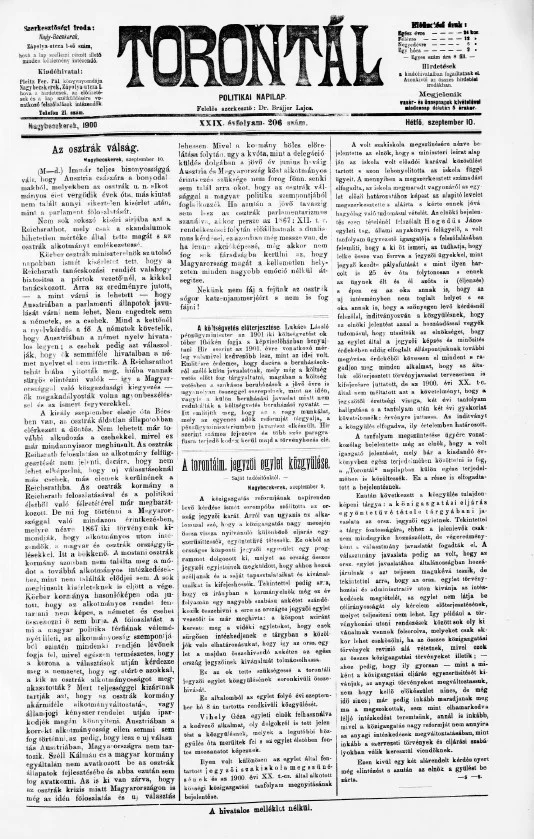 Torontál, 29. évf. 1900. szeptember 10. 206. sz.