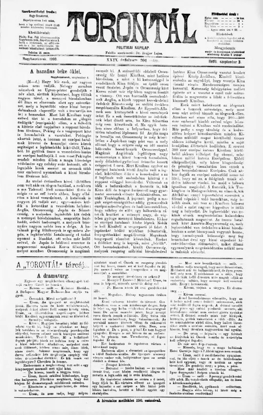 Torontál, 29. évf. 1900. szeptember 3. 201. sz.