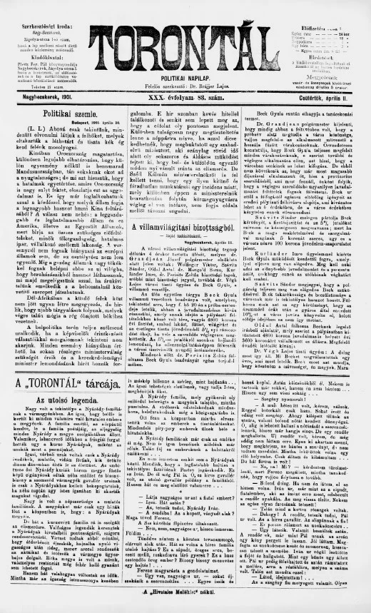Torontál, 30. évf. 1901. április 11. 83. sz.