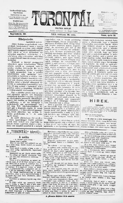 Torontál, 30. évf. 1901. április 26. 96. sz.