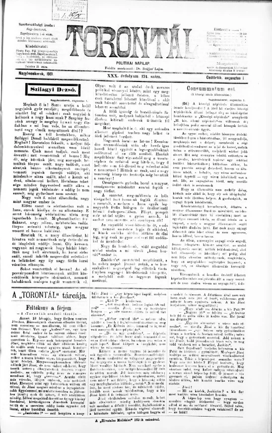 Torontál, 30. évf. 1901. augusztus 1. 174. sz.
