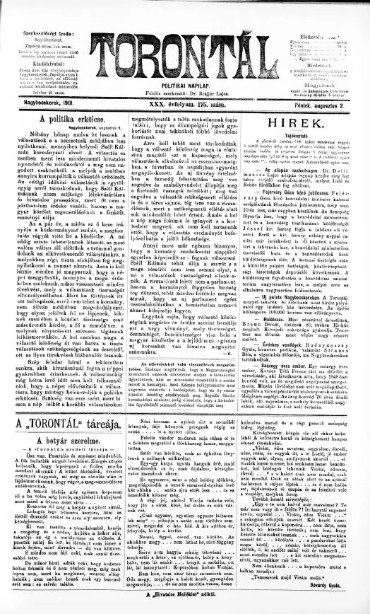 Torontál, 30. évf. 1901. augusztus 2. 175. sz.