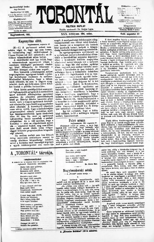 Torontál, 30. évf. 1901. augusztus 27. 194. sz.