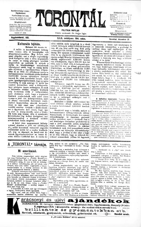 Torontál, 30. évf. 1901. december 21. 293. sz.