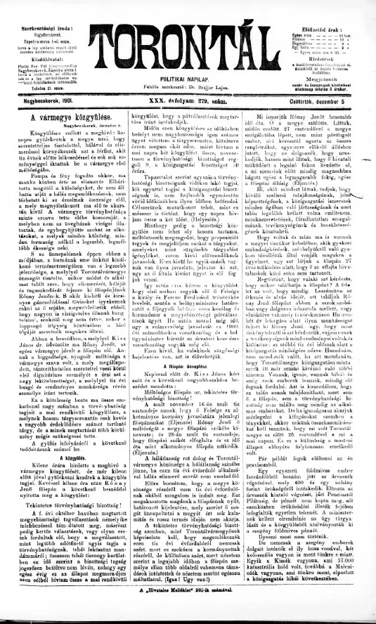 Torontál, 30. évf. 1901. december 5. 279. sz.