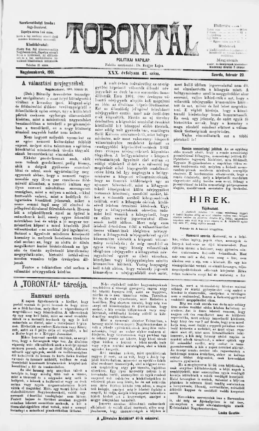 Torontál, 30. évf. 1901. február 20. 42. sz.