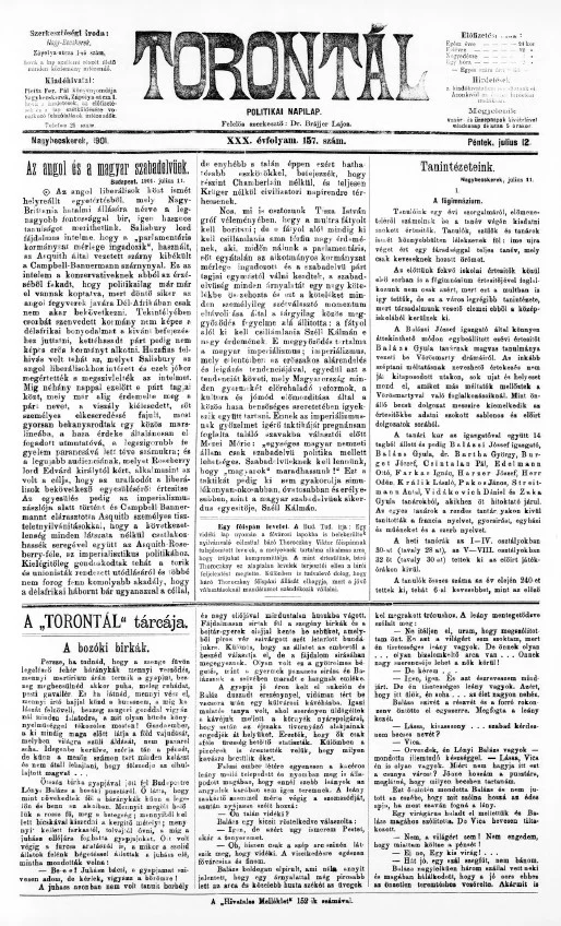Torontál, 30. évf. 1901. július 12. 157. sz.
