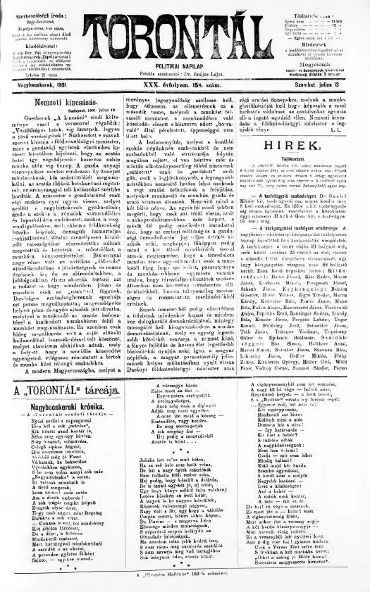 Torontál, 30. évf. 1901. július 13. 158. sz.