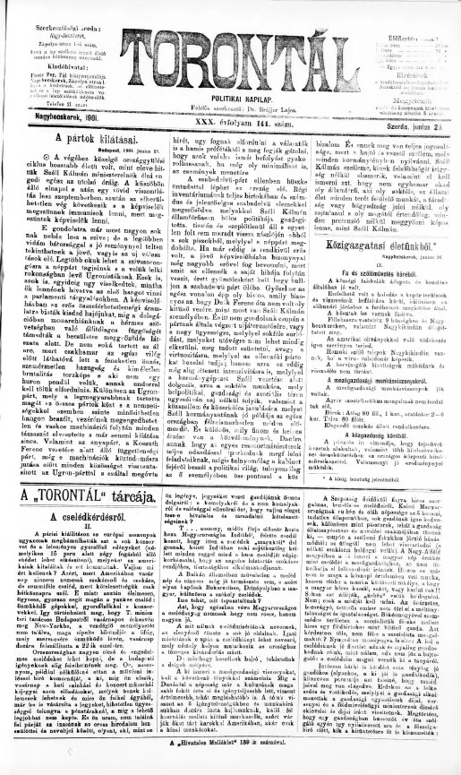 Torontál, 30. évf. 1901. június 26. 144. sz.