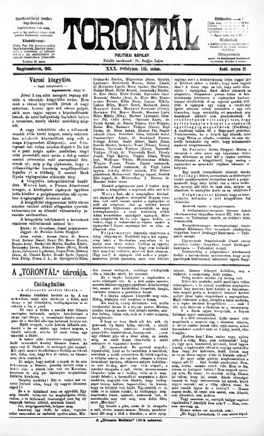 Torontál, 30. évf. 1901. május 21. 115. sz.