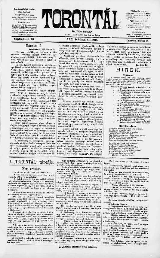 Torontál, 30. évf. 1901. március 14. 61. sz.