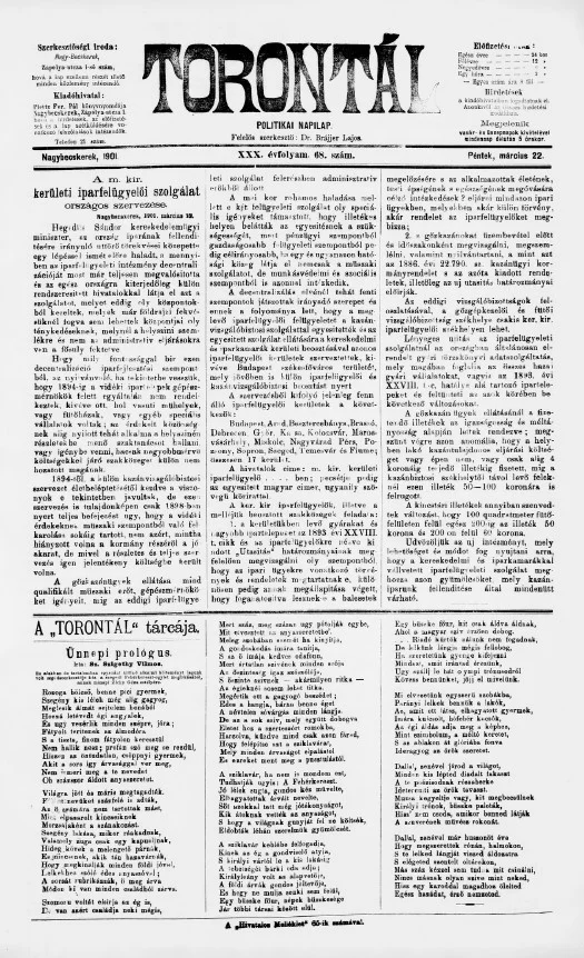 Torontál, 30. évf. 1901. március 22. 68. sz.