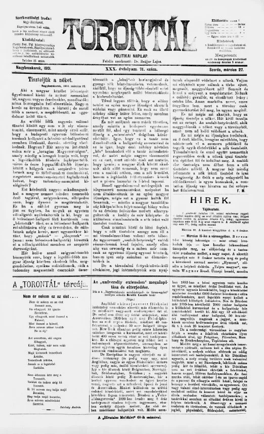 Torontál, 30. évf. 1901. március 27. 71. sz.