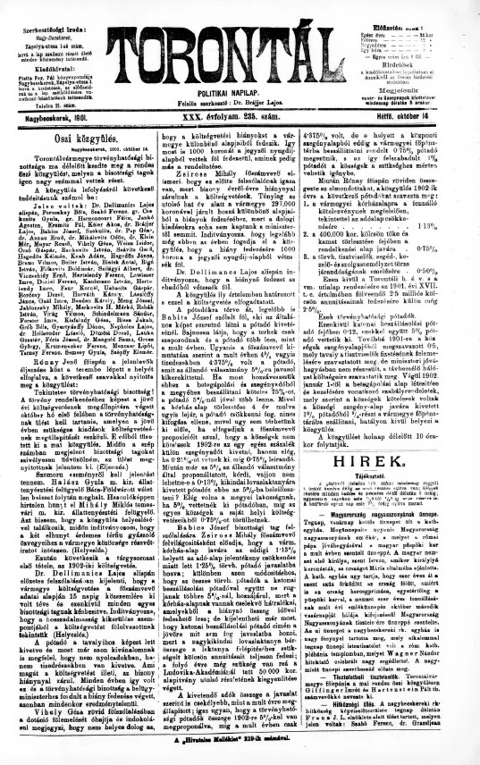 Torontál, 30. évf. 1901. október 14. 235. sz.