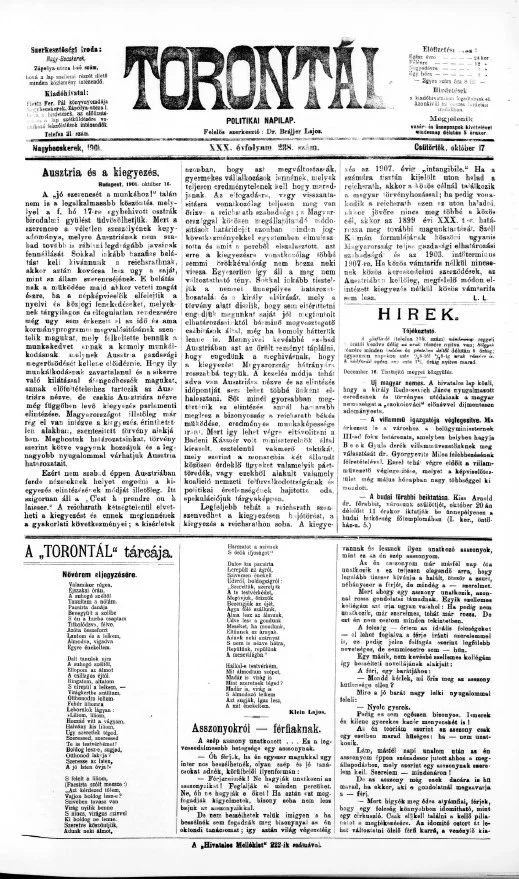 Torontál, 30. évf. 1901. október 17. 238. sz.