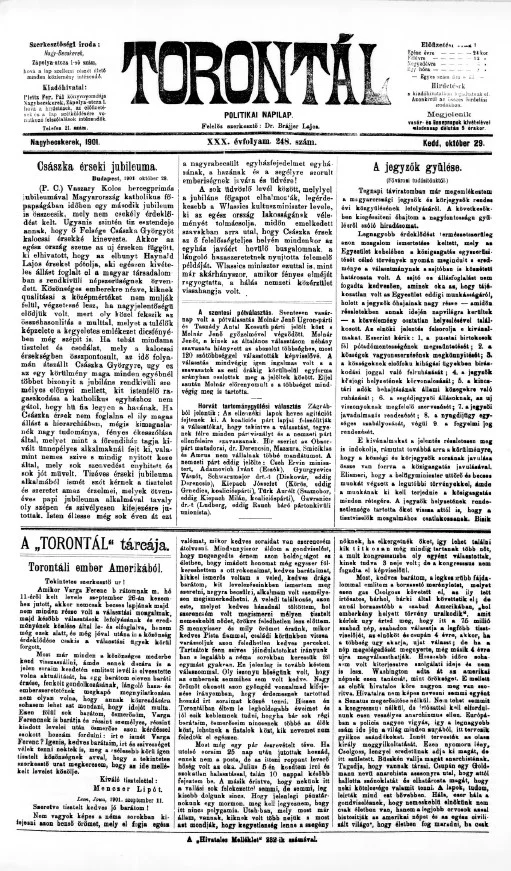Torontál, 30. évf. 1901. október 29. 248. sz.