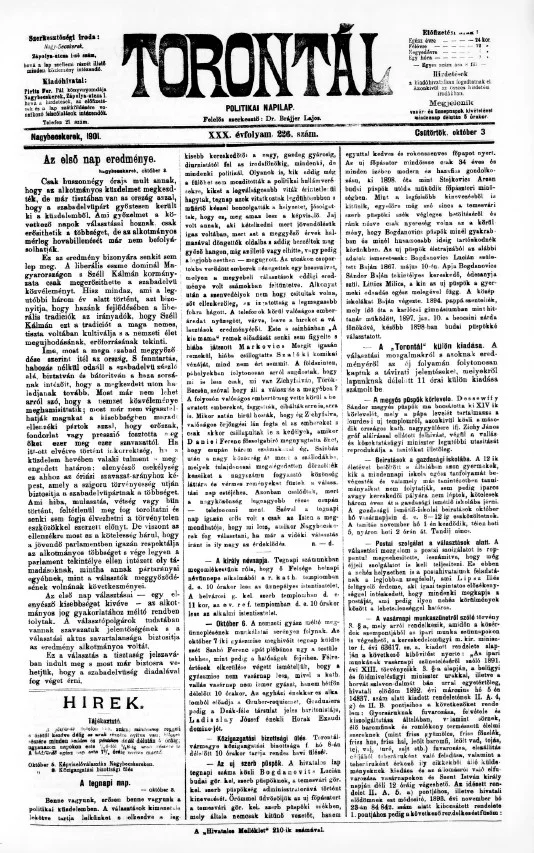 Torontál, 30. évf. 1901. október 3. 226. sz.