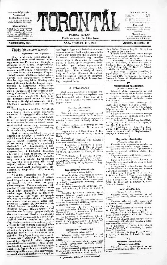Torontál, 30. évf. 1901. szeptember 19. 214. sz.