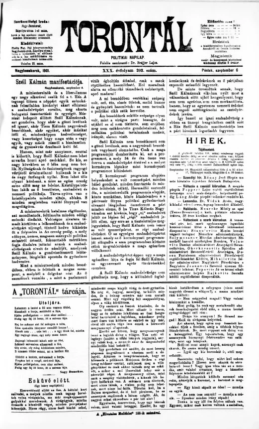 Torontál, 30. évf. 1901. szeptember 6. 203. sz.