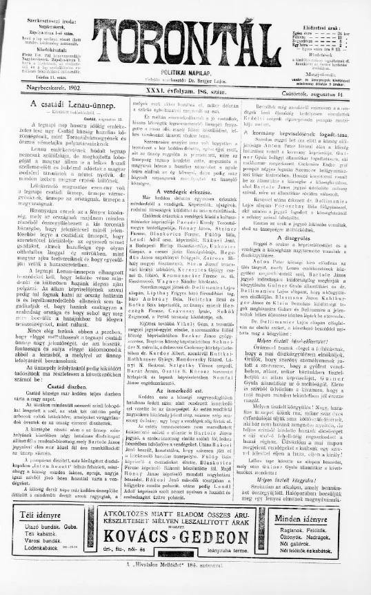 Torontál, 31. évf. 1902. augusztus 14. 186. sz.