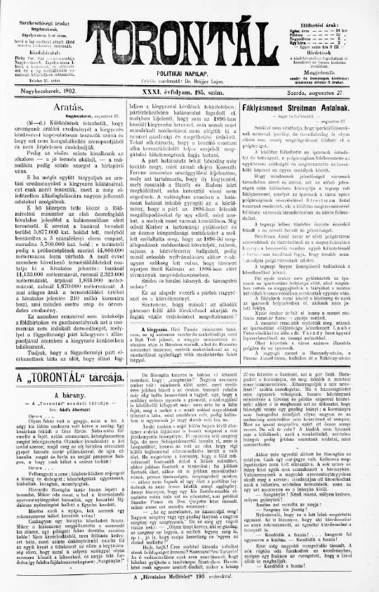 Torontál, 31. évf. 1902. augusztus 27. 195. sz.
