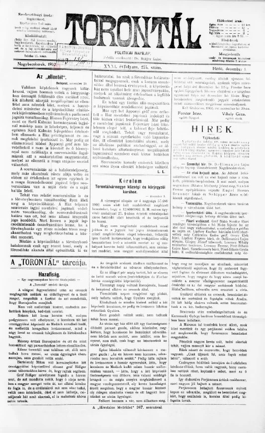 Torontál, 31. évf. 1902. december 1. 275. sz.