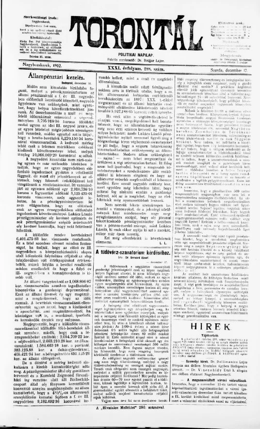 Torontál, 31. évf. 1902. december 17. 288. sz.